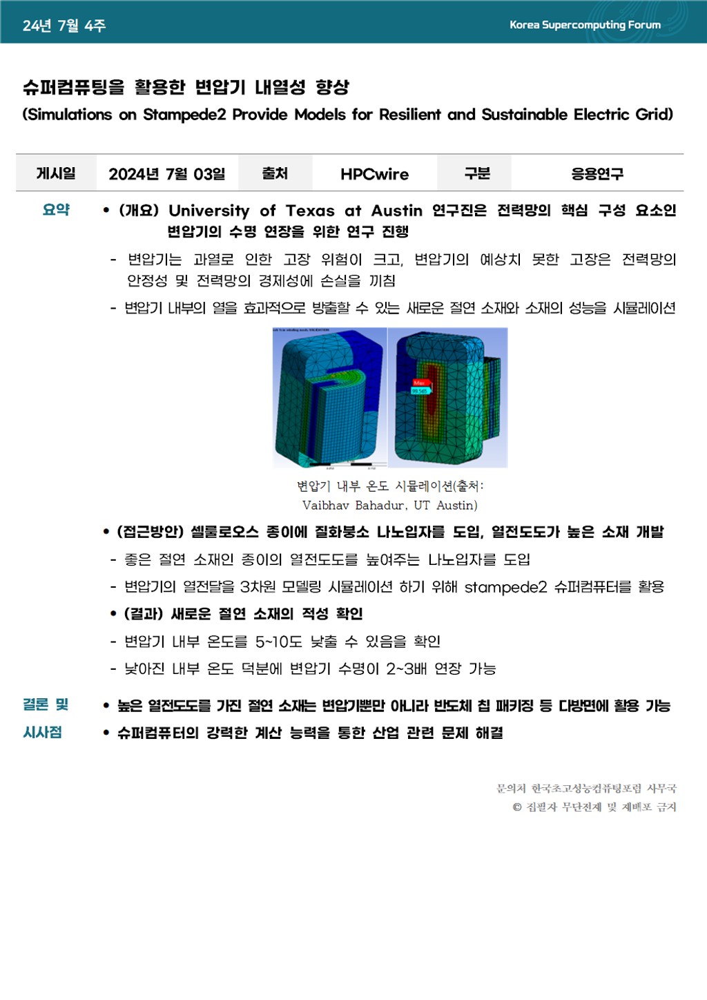 슈퍼컴퓨팅을 활용한 변압기 내열성 향상