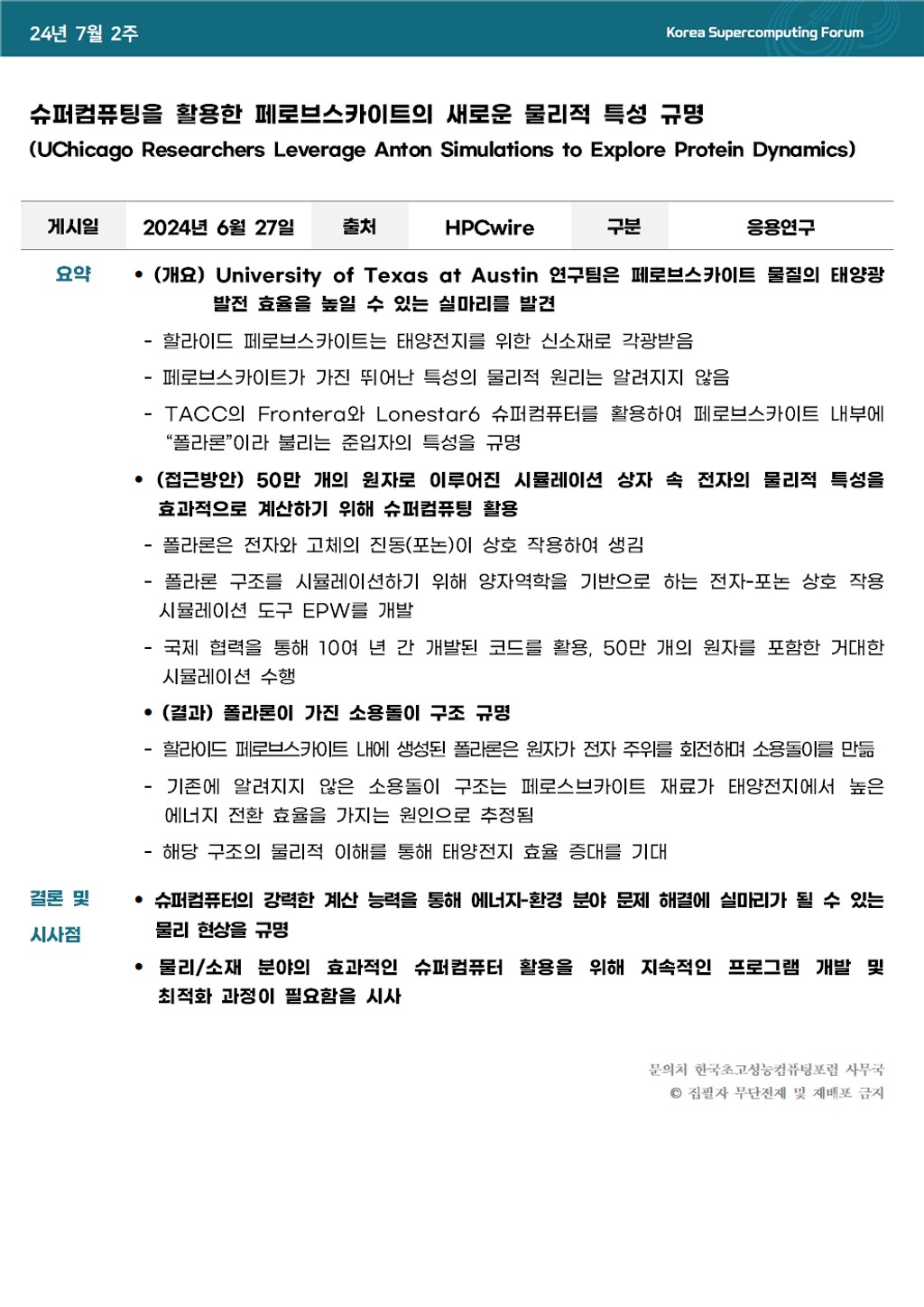 슈퍼컴퓨팅을 활용한 페로브스카이트의 새로운 물리적 특성 규명
