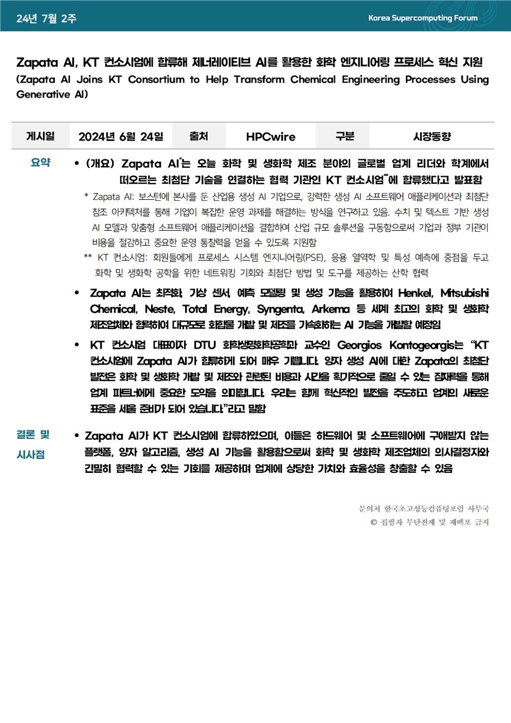 Zapata AI, KT 컨소시엄에 합류해 제너레이티브 AI를 활용한 화학 엔지니어링 프로세스 혁신 지원