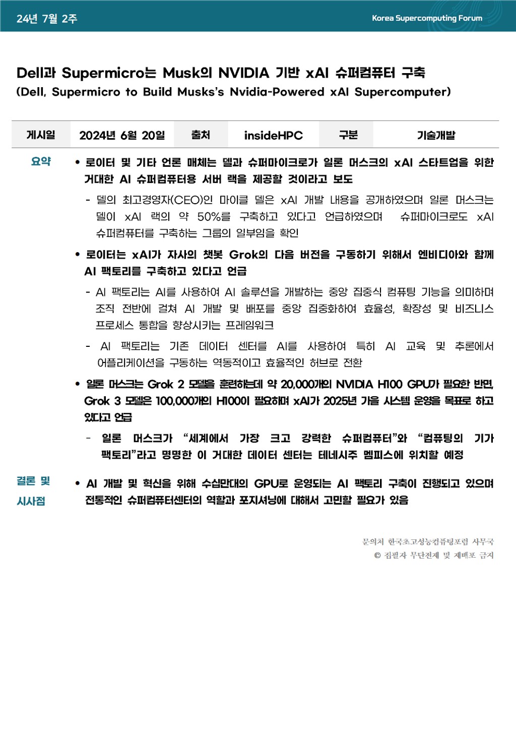 Dell과 Supermicro는 Musk의 NVIDIA 기반 xAI 슈퍼컴퓨터 구축