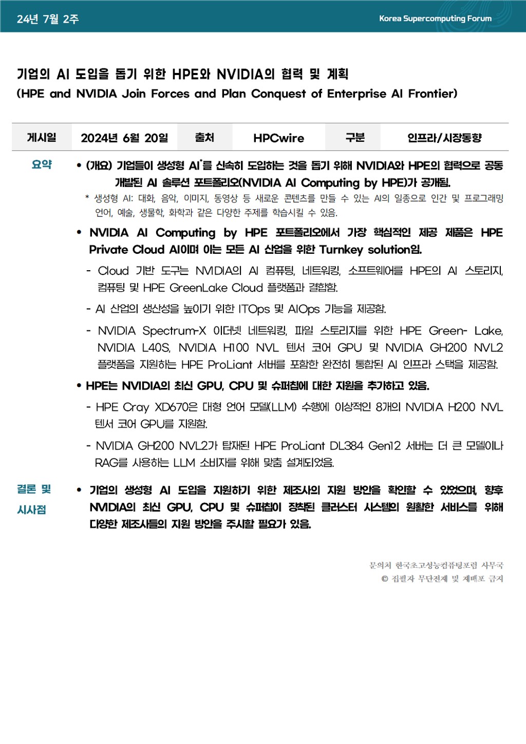 기업의 AI 도입을 돕기 위한 HPE와 NVIDIA의 협력 및 계획