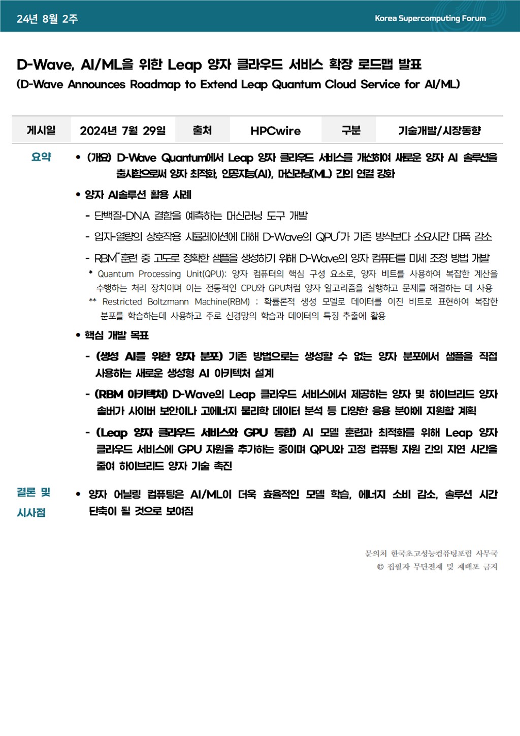D-Wave, AI/ML을 위한 Leap 양자 클라우드 서비스 확장 로드맵 발표
