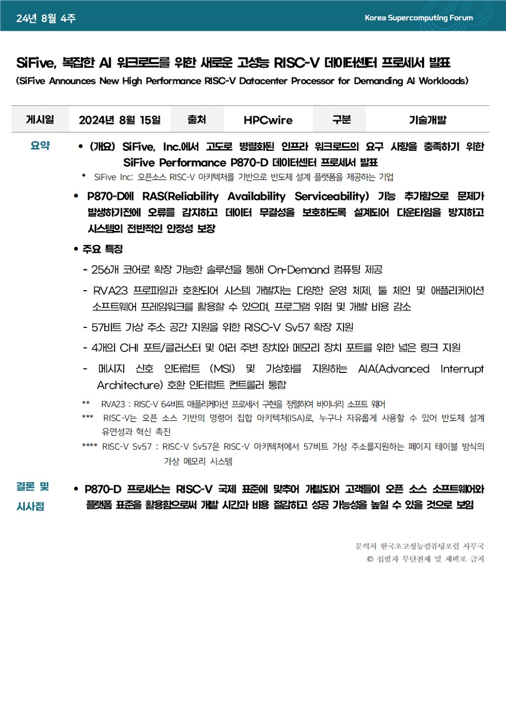 SiFive, 복잡한 AI 워크로드를 위한 새로운 고성능 RISC-V 데이터센터 프로세서 발표