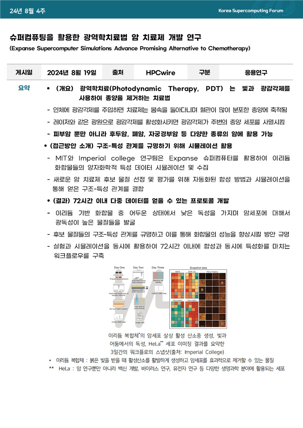 슈퍼컴퓨팅을 활용한 광역학적치료법 암 치료제 개발 연구