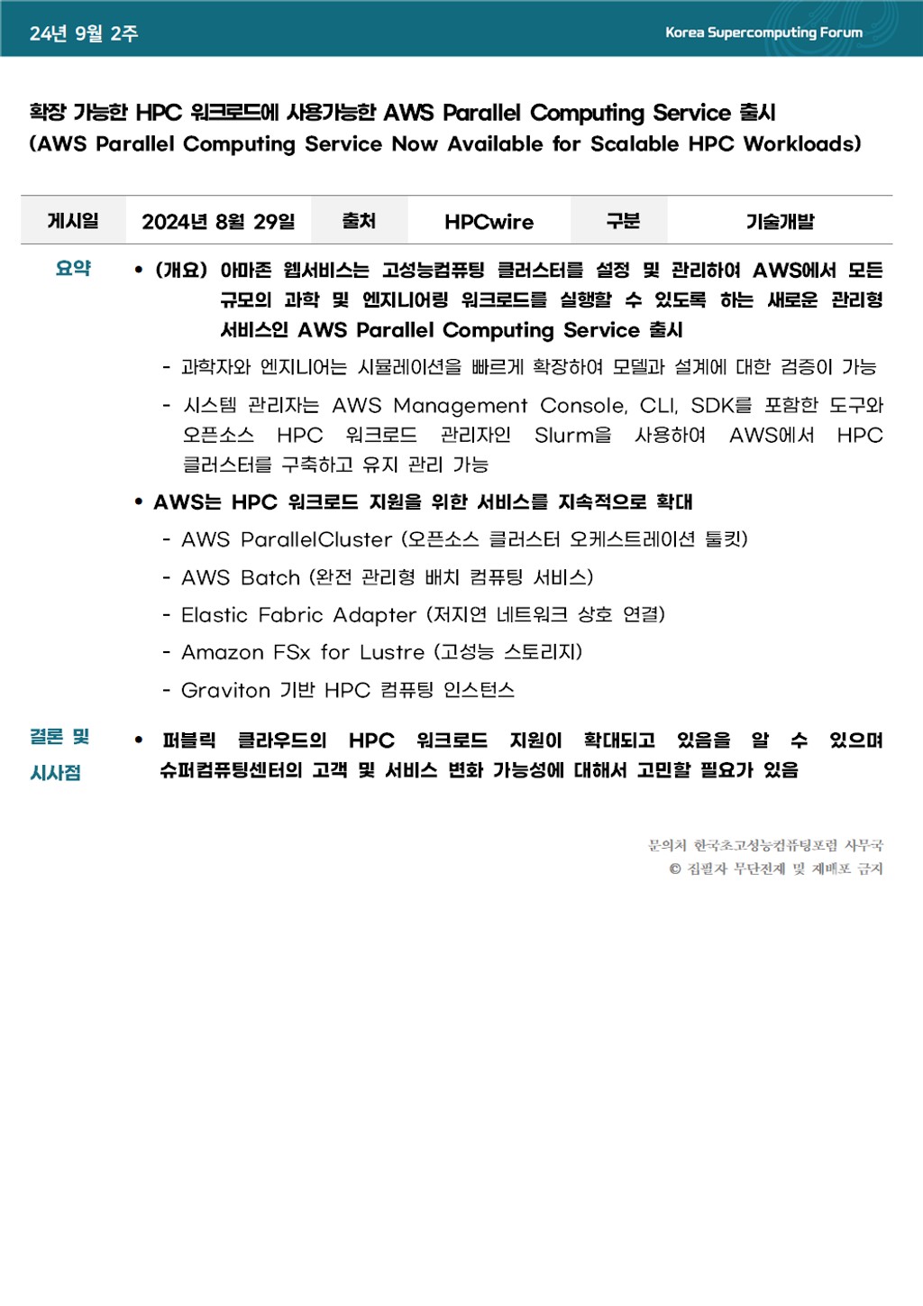 확장 가능한 HPC 워크로드에 사용가능한 AWS Parallel Computing Service 출시