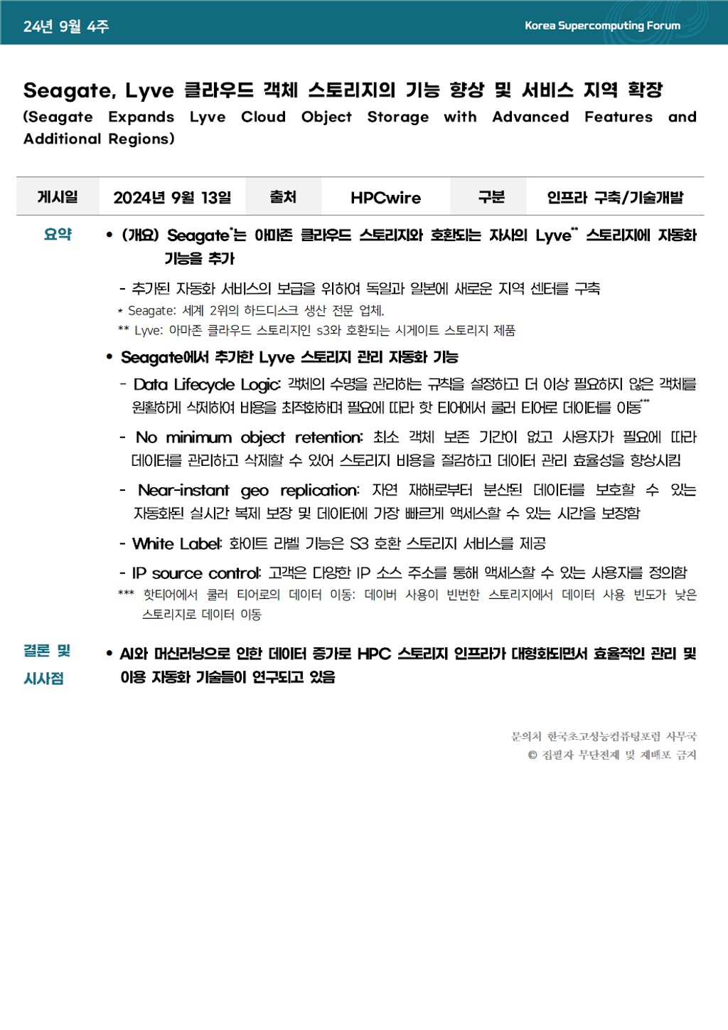 Seagate, Lyve 클라우드 객체 스토리지의 기능 향상 및 서비스 지역 확장