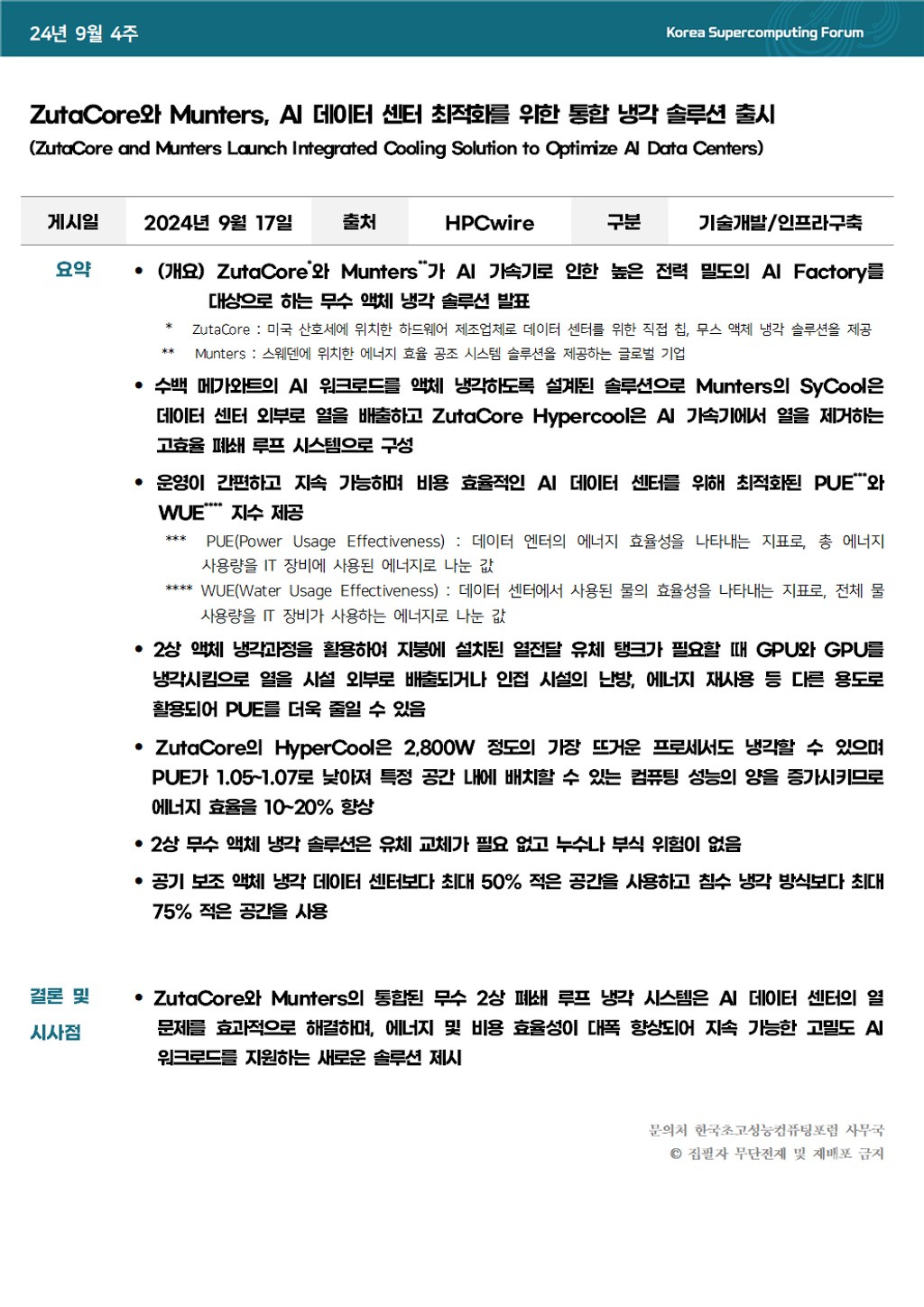 ZutaCore와 Munters, AI 데이터 센터 최적화를 위한 통합 냉각 솔루션 출시