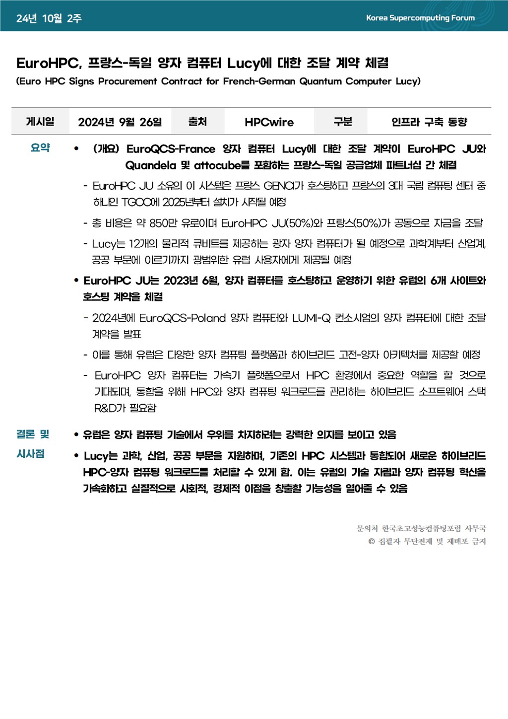 EuroHPC, 프랑스-독일 양자 컴퓨터 Lucy에 대한 조달 계약 체결