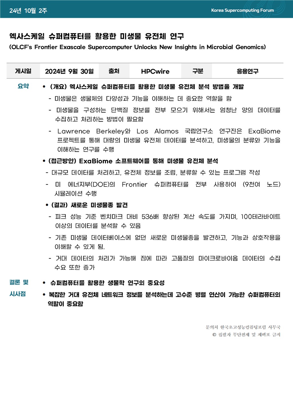 엑사스케일 슈퍼컴퓨터를 활용한 미생물 유전체 연구