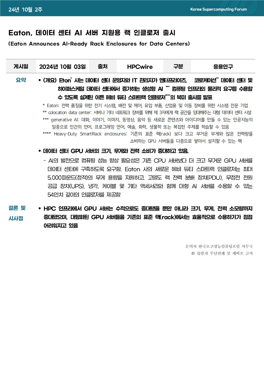 Eaton, 데이터 센터 AI 서버 지원용 랙 인클로저 출시