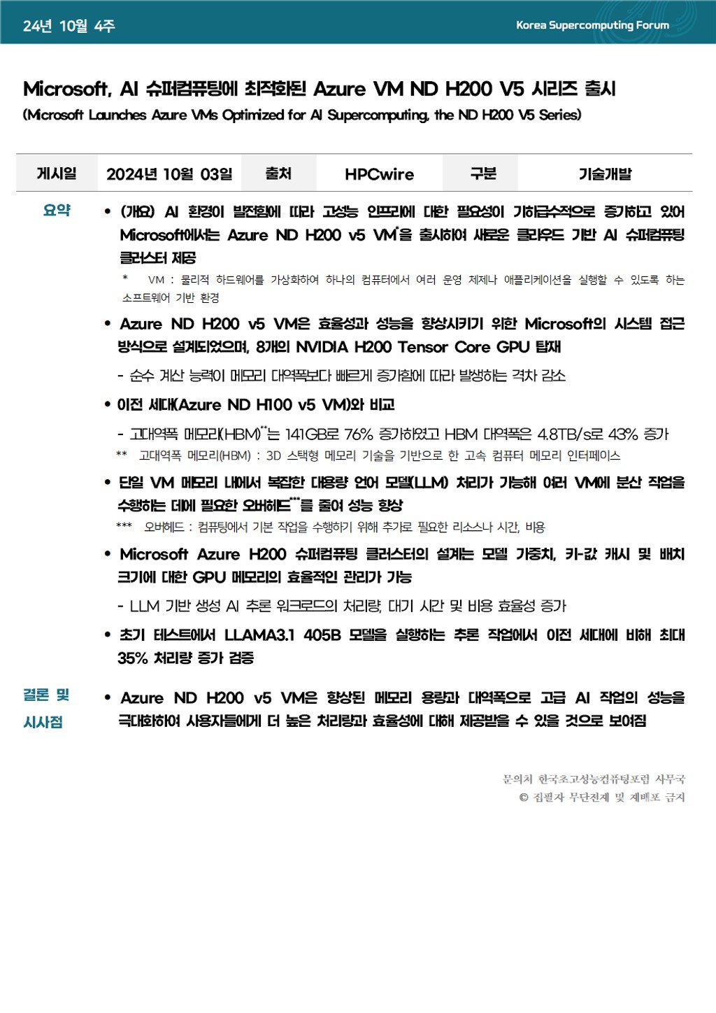 Microsoft, AI 슈퍼컴퓨팅에 최적화된 Azure VM ND H200 V5 시리즈 출시
