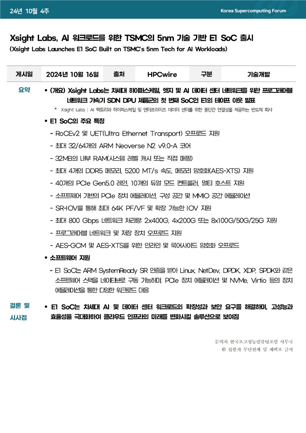Xsight Labs, AI 워크로드를 위한 TSMC의 5nm 기술 기반 E1 SoC 출시