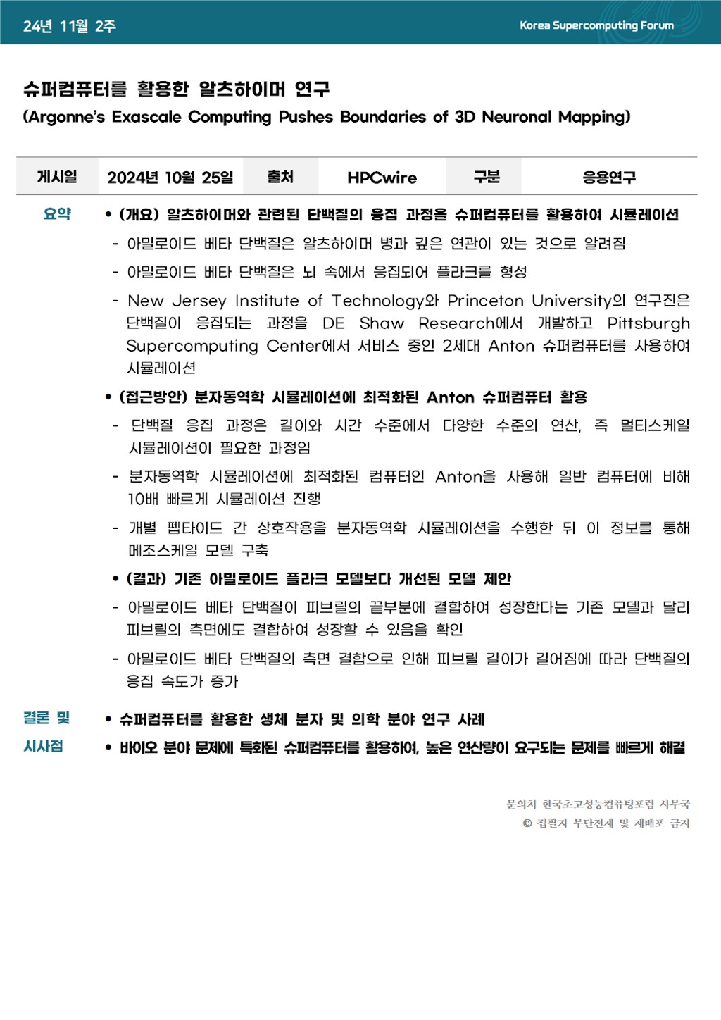슈퍼컴퓨터를 활용한 알츠하이머 연구