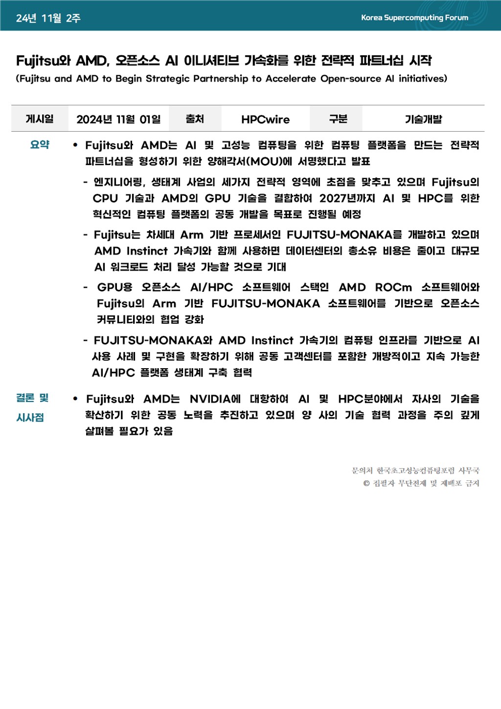 Fujitsu와 AMD, 오픈소스 AI 이니셔티브 가속화를 위한 전략적 파트너십 시작