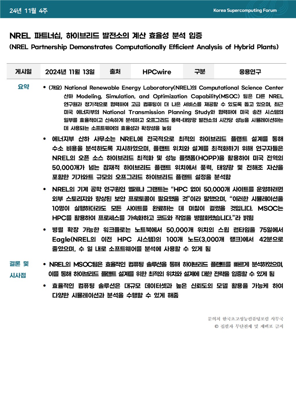 NREL 파트너십, 하이브리드 발전소의 계산 효율성 분석 입증