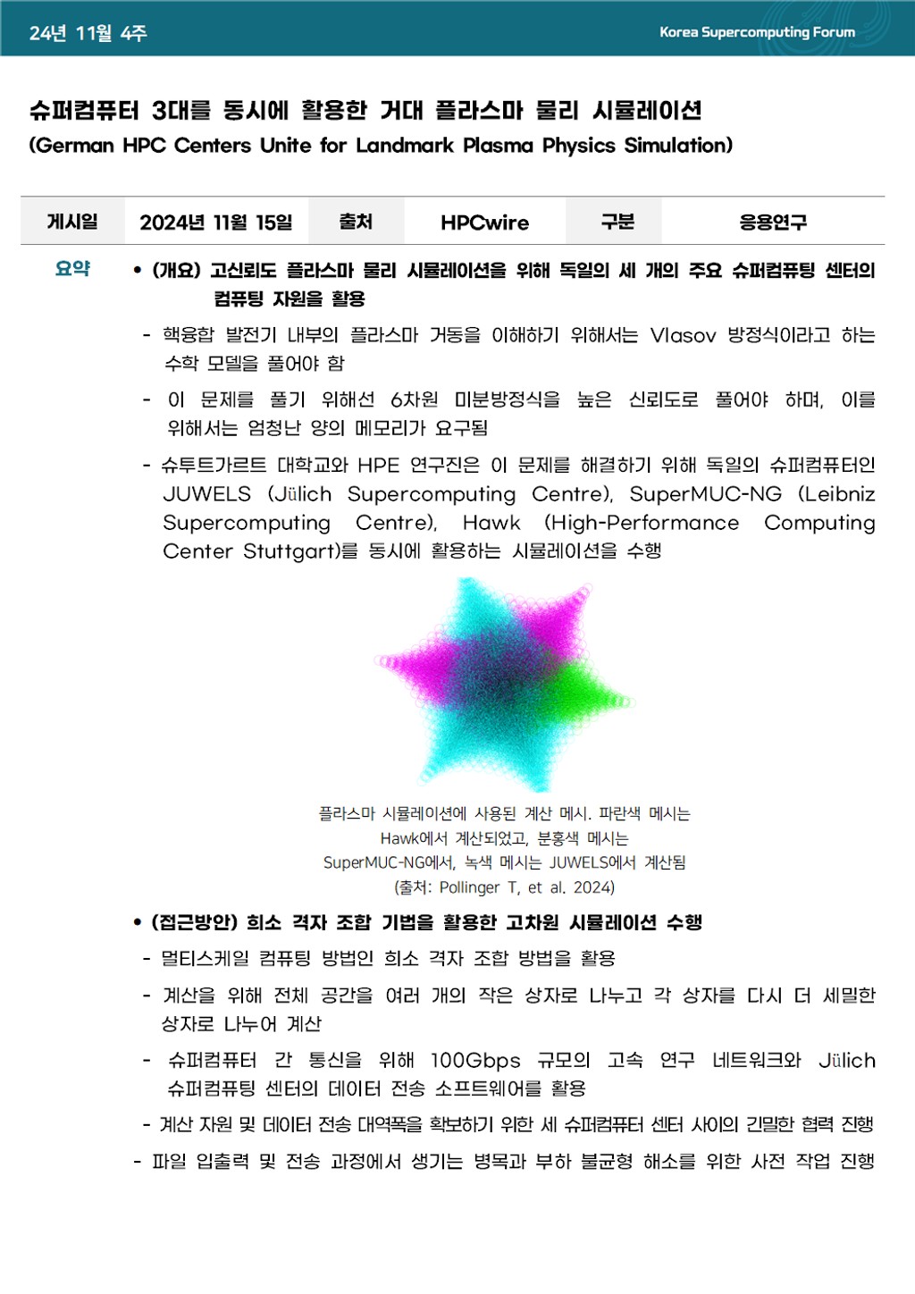 슈퍼컴퓨터 3대를 동시에 활용한 거대 플라스마 물리 시뮬레이션
