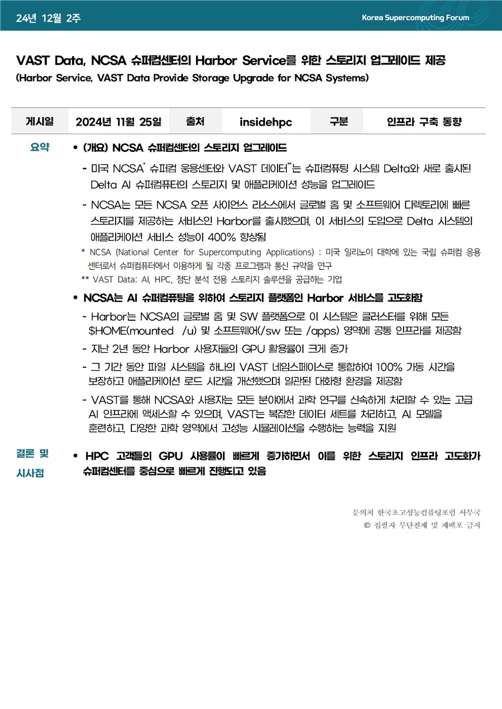 VAST Data, NCSA 슈퍼컴센터의 Harbor Service를 위한 스토리지 업그레이드 제공