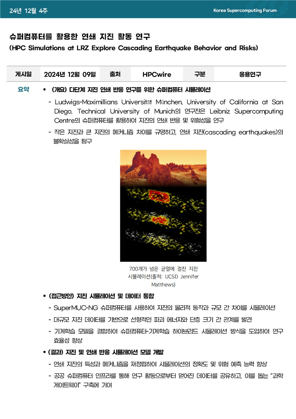 슈퍼컴퓨터를 활용한 연쇄 지진 활동 연구