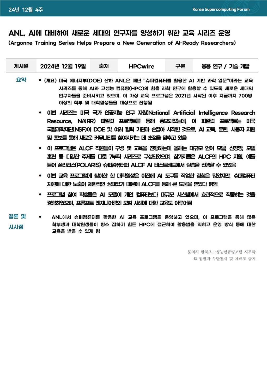 ANL, AI에 대비하여 새로운 세대의 연구자를 양성하기 위한 교육 시리즈 운영