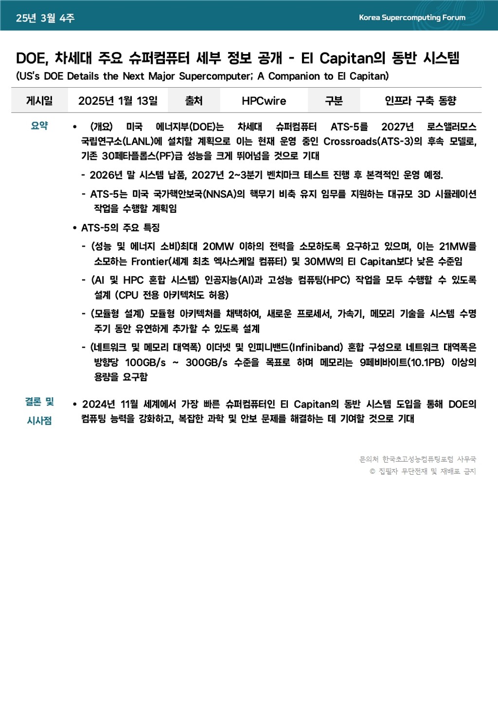 DOE, 차세대 주요 슈퍼컴퓨터 세부 정보 공개 - El Capitan의 동반 시스템