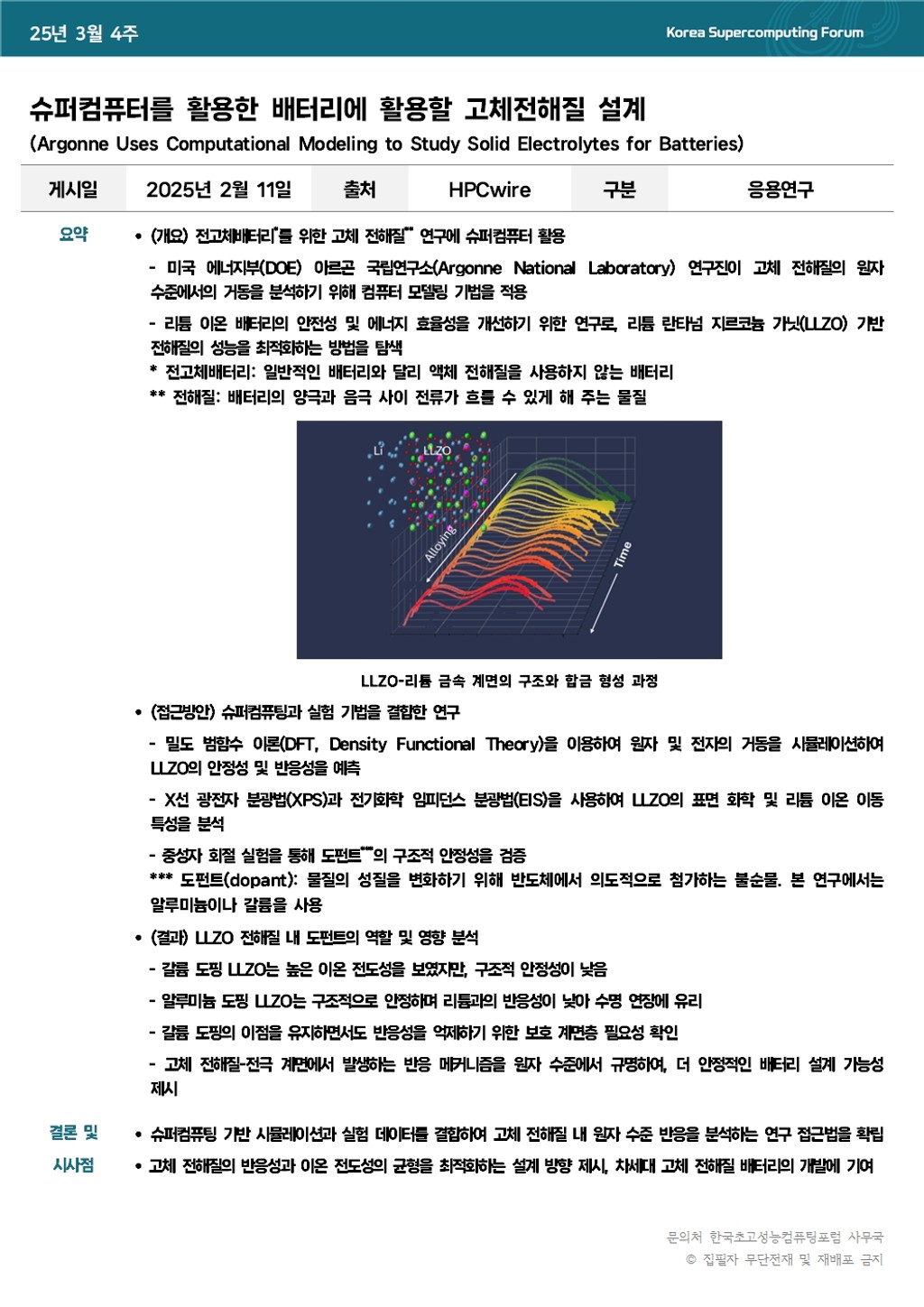 슈퍼컴퓨터를 활용한 배터리에 활용할 고체전해질 설계
