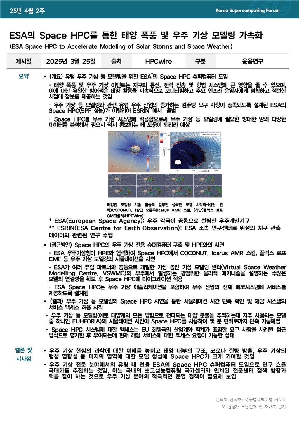 ESA의 Space HPC를 통한 태양 폭풍 및 우주 기상 모델링 가속화