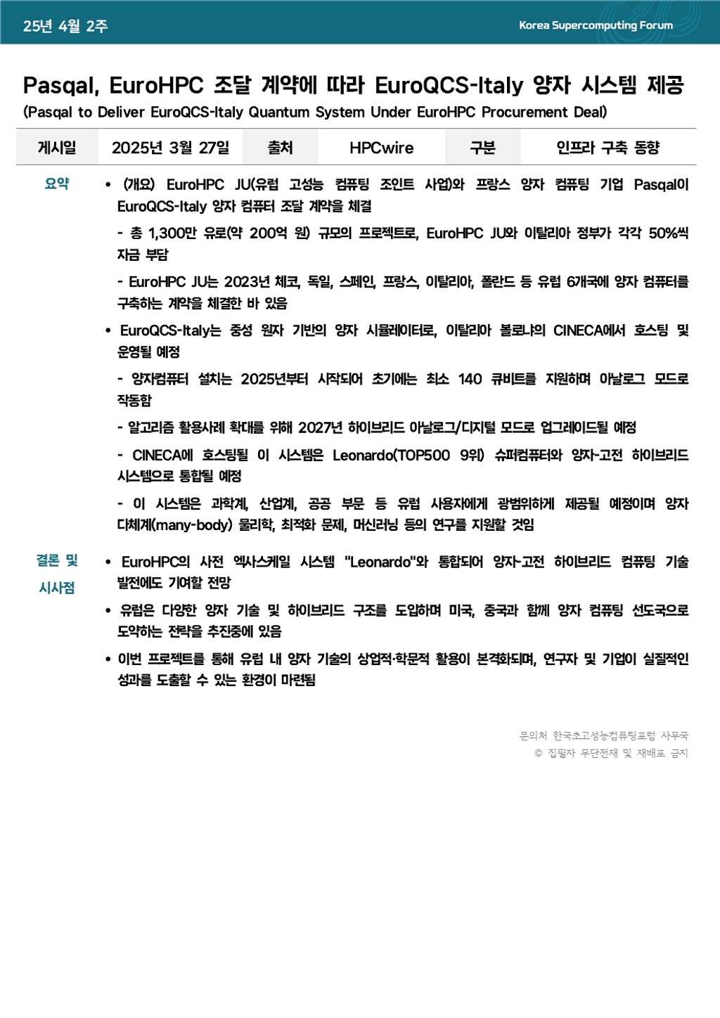 Pasqal, EuroHPC 조달 계약에 따라 EuroQCS-Italy 양자 시스템 제공