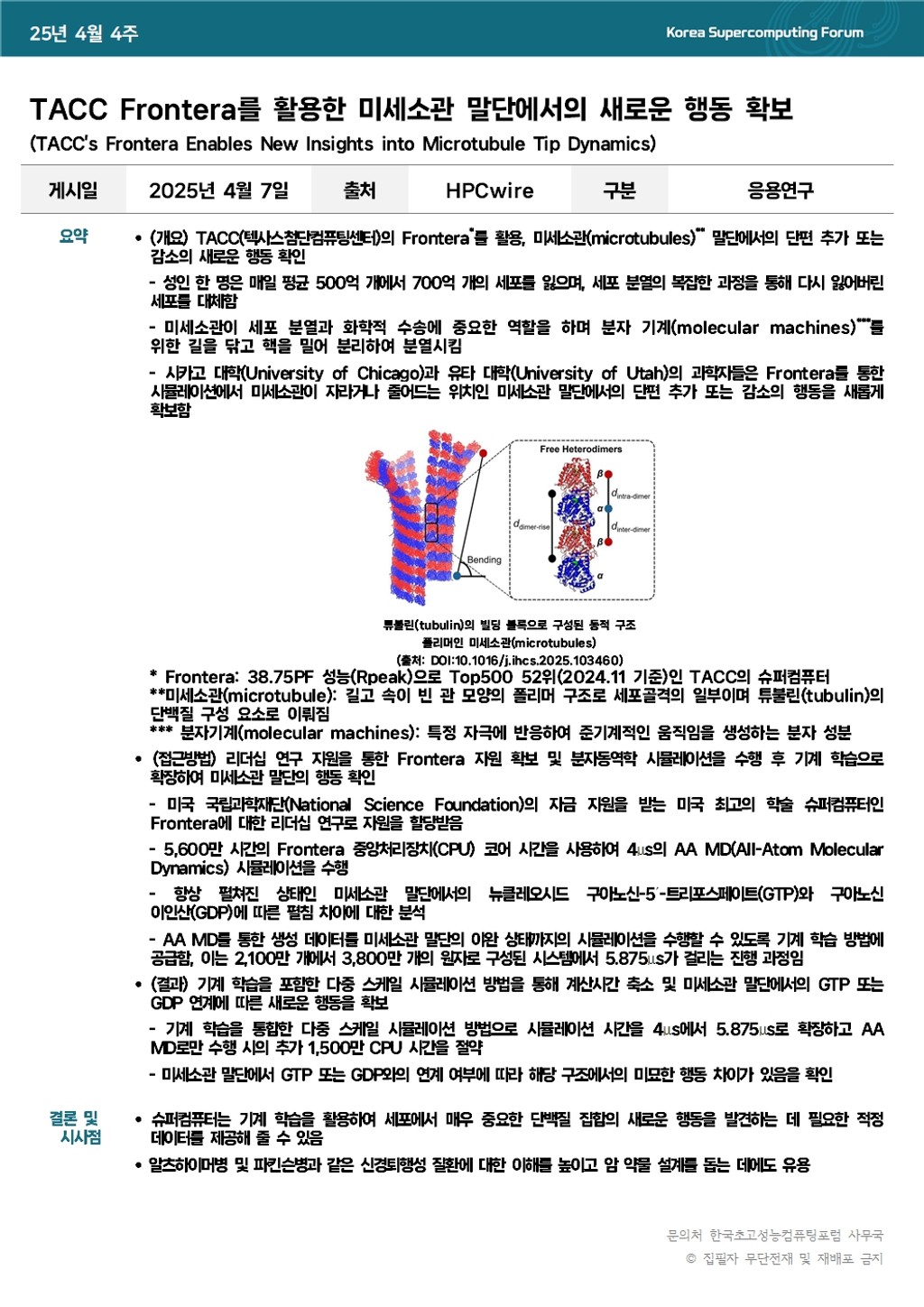 TACC Frontera를 활용한 미세소관 말단에서의 새로운 행동 확보