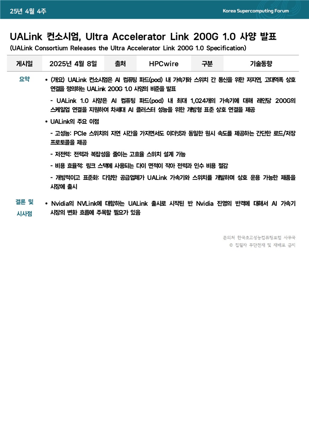 UALink 컨소시엄, Ultra Accelerator Link 200G 1.0 사양 발표