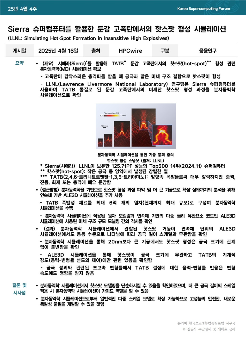 Sierra 슈퍼컴퓨터를 활용한 둔감 고폭탄에서의 핫스팟 형성 시뮬레이션