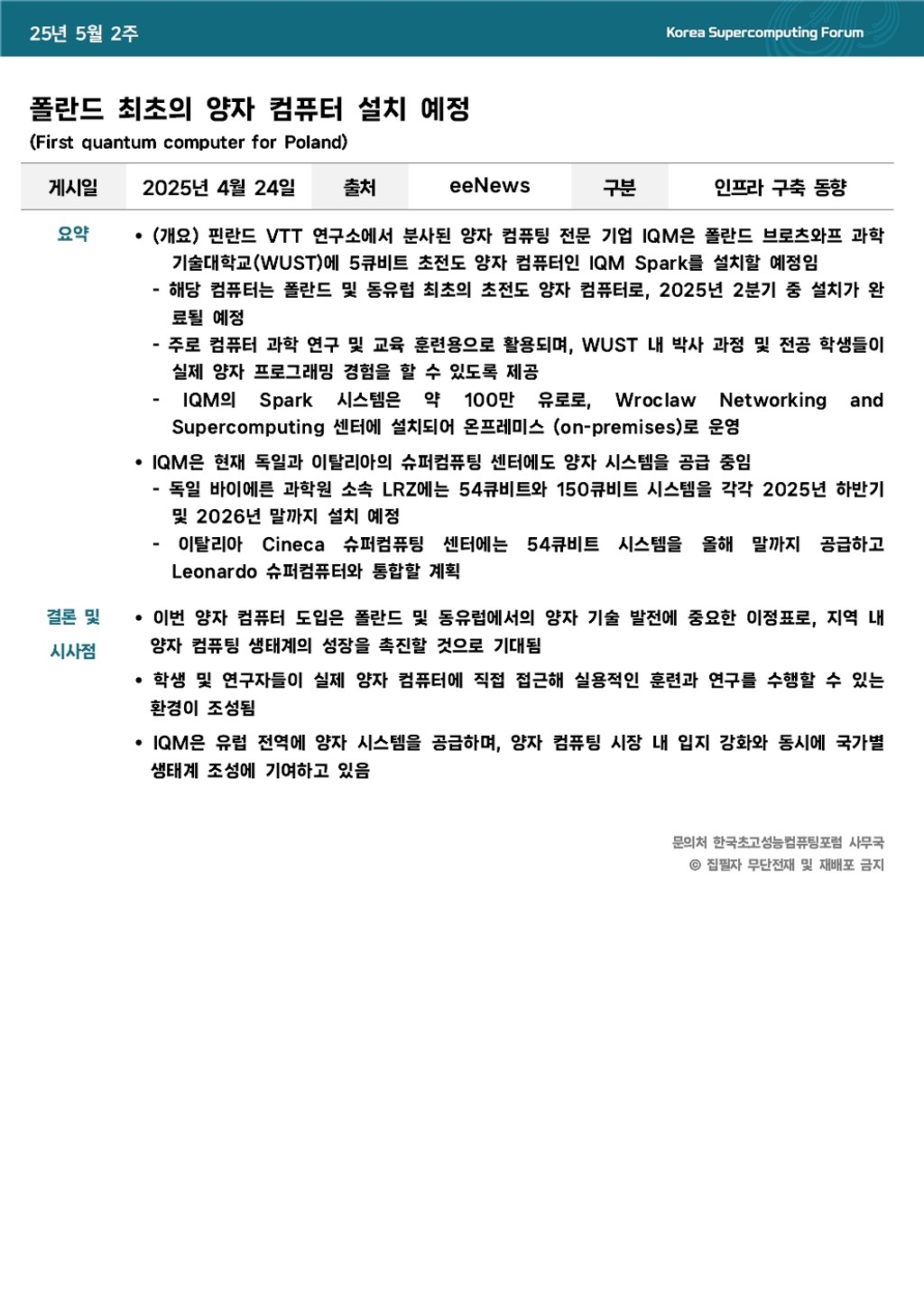 폴란드 최초의 양자 컴퓨터 설치 예정