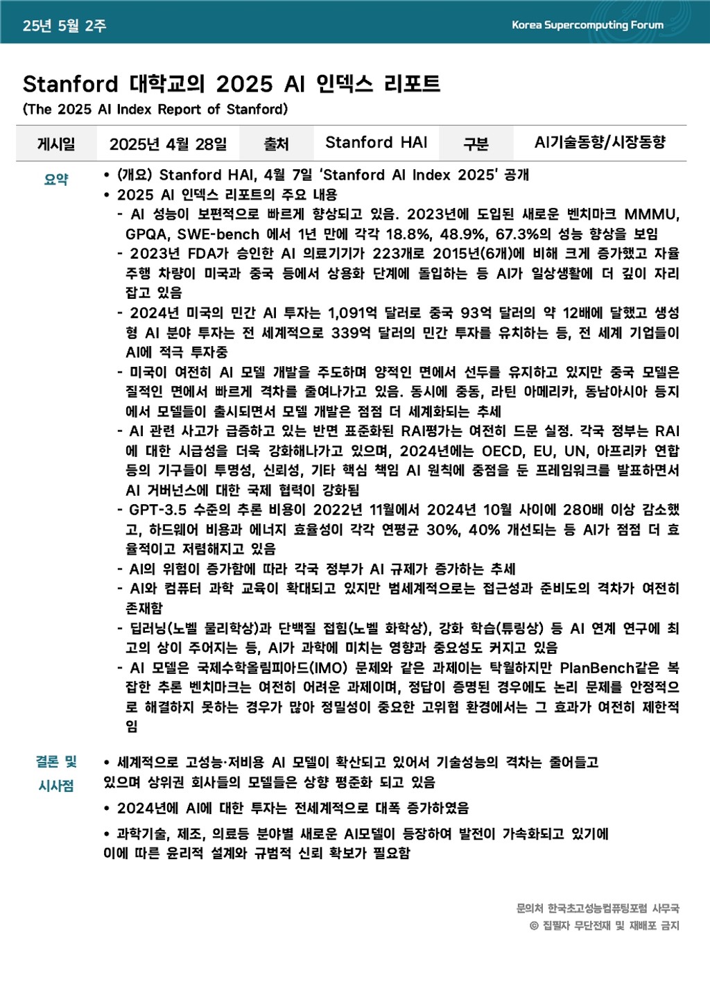Stanford 대학교의 2025 AI 인덱스 리포트