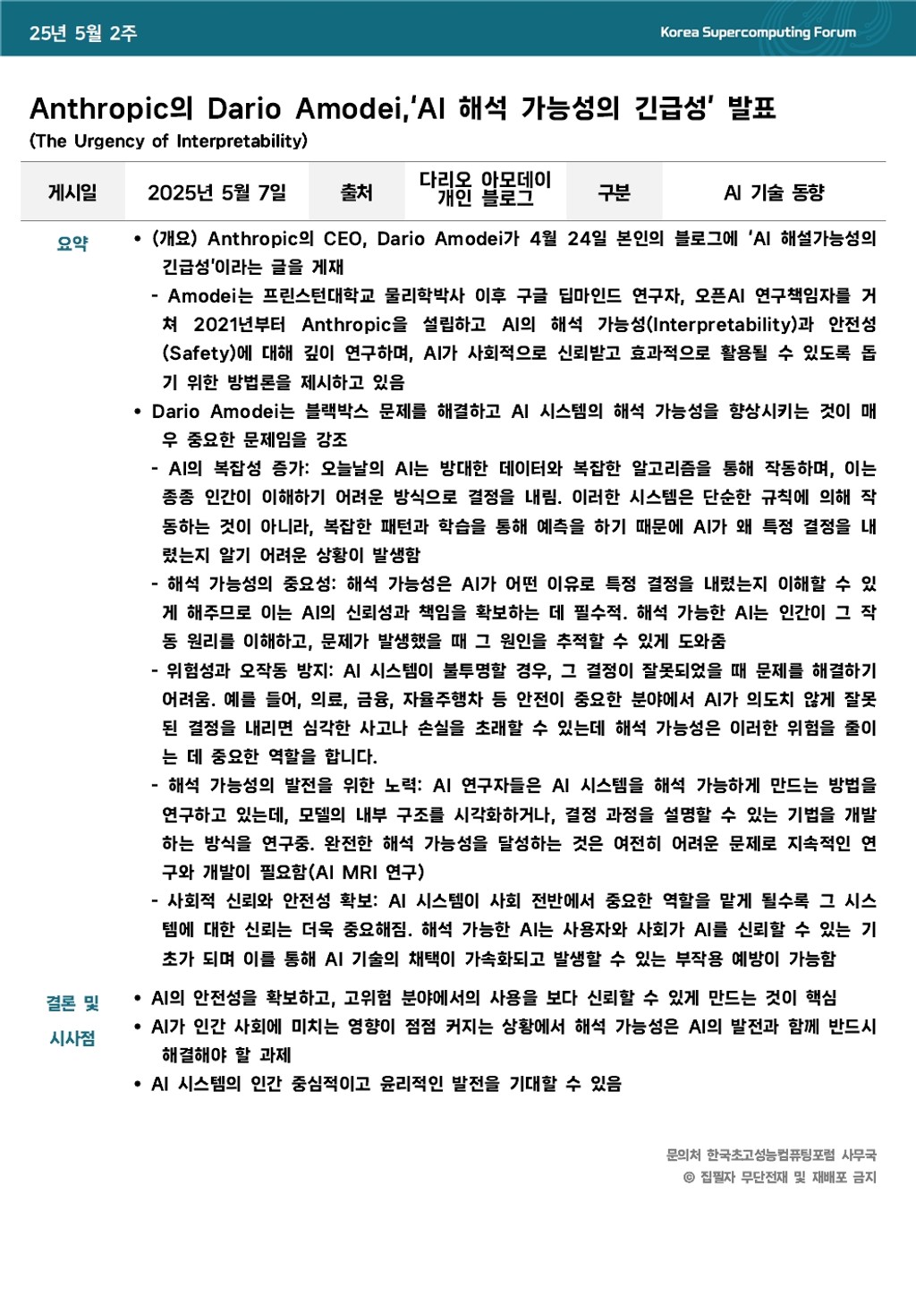 Anthropic의 Dario Amodei,‘AI 해석 가능성의 긴급성’ 발표