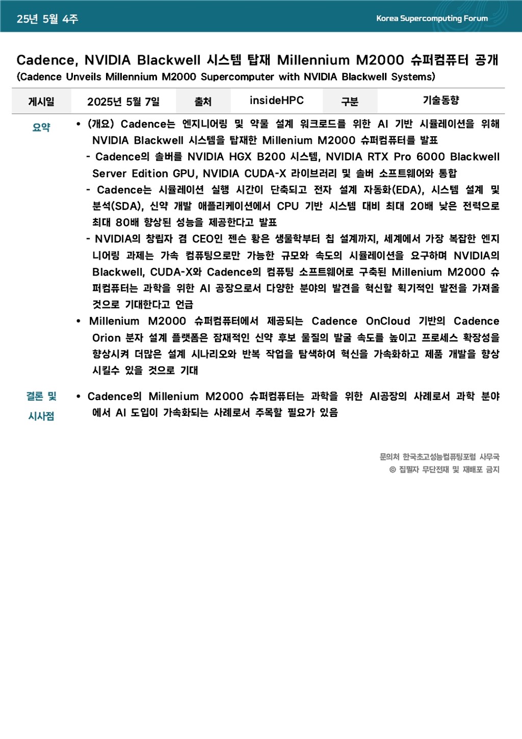 Cadence, NVIDIA Blackwell 시스템 탑재 Millennium M2000 슈퍼컴퓨터 공개