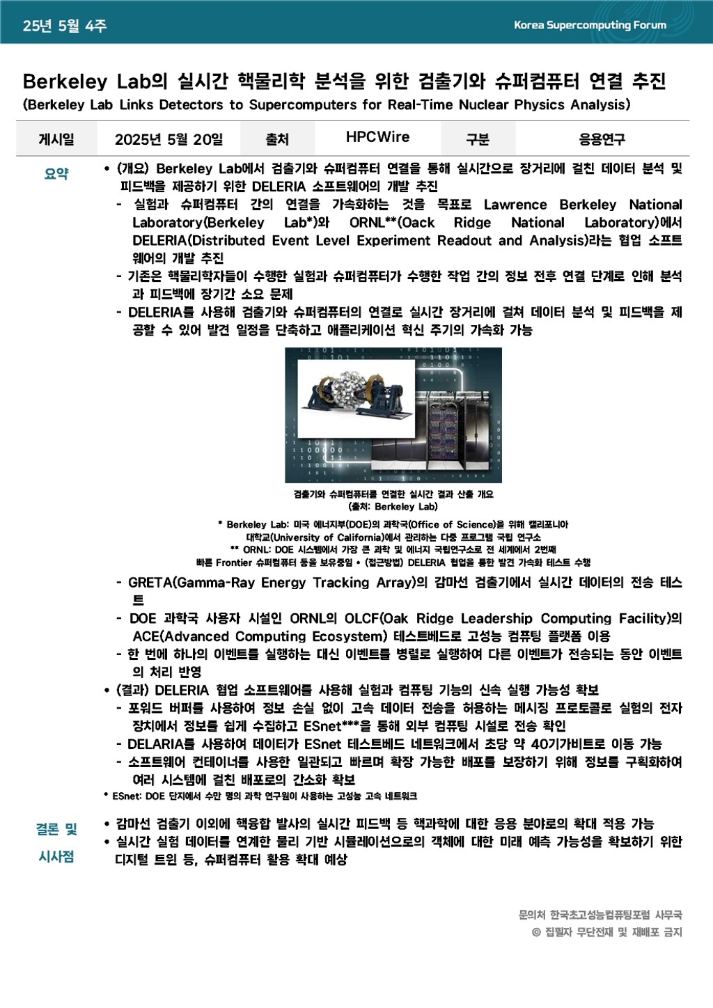 Berkeley Lab의 실시간 핵물리학 분석을 위한 검출기와 슈퍼컴퓨터 연결 추진