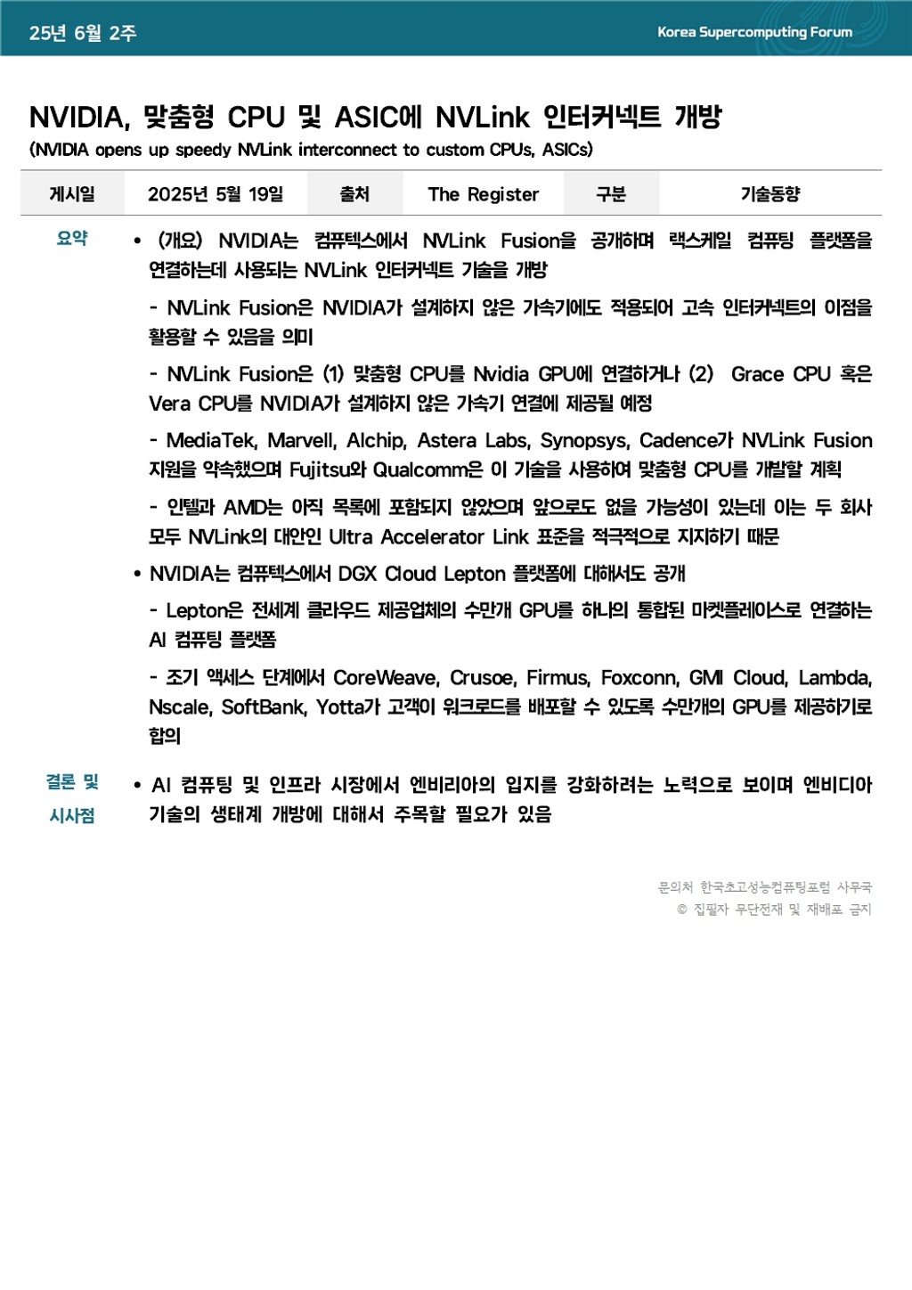 NVIDIA, 맞춤형 CPU 및 ASIC에 NVLink 인터커넥트 개방