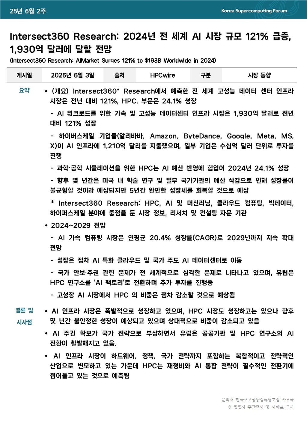 Intersect360 Research: 2024년 전 세계 AI 시장 규모 121% 급증, 1,930억 달러에 달할 전망