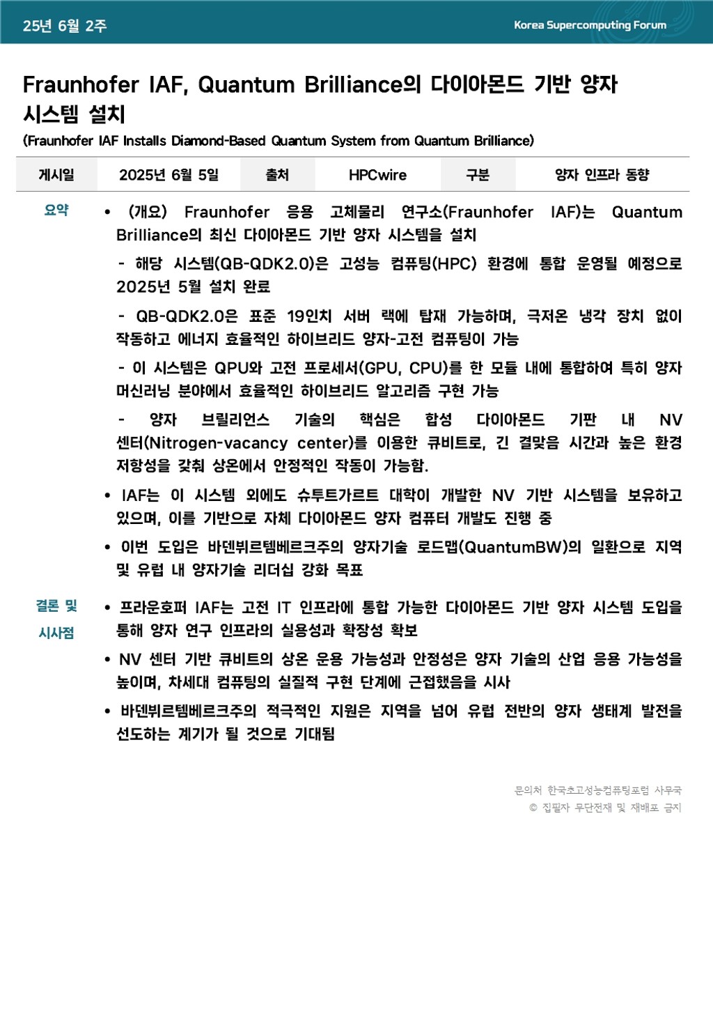 Fraunhofer IAF, Quantum Brilliance의 다이아몬드 기반 양자 시스템 설치