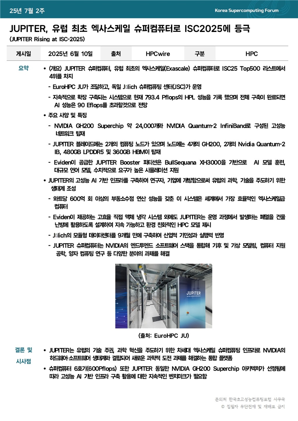 JUPITER, 유럽 최초 엑사스케일 슈퍼컴퓨터로 ISC2025에 등극