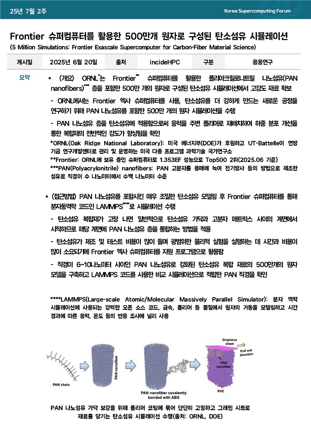 Frontier 슈퍼컴퓨터를 활용한 500만개 원자로 구성된 탄소섬유 시뮬레이션
