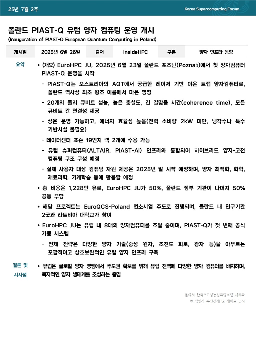 폴란드 PIAST-Q 유럽 양자 컴퓨팅 운영 개시