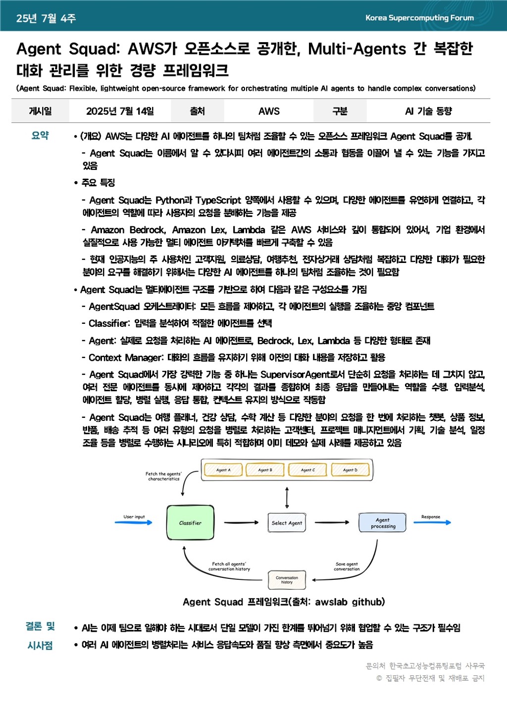 Agent Squad: AWS가 오픈소스로 공개한, Multi-Agents 간 복잡한 대화 관리를 위한 경량 프레임워크