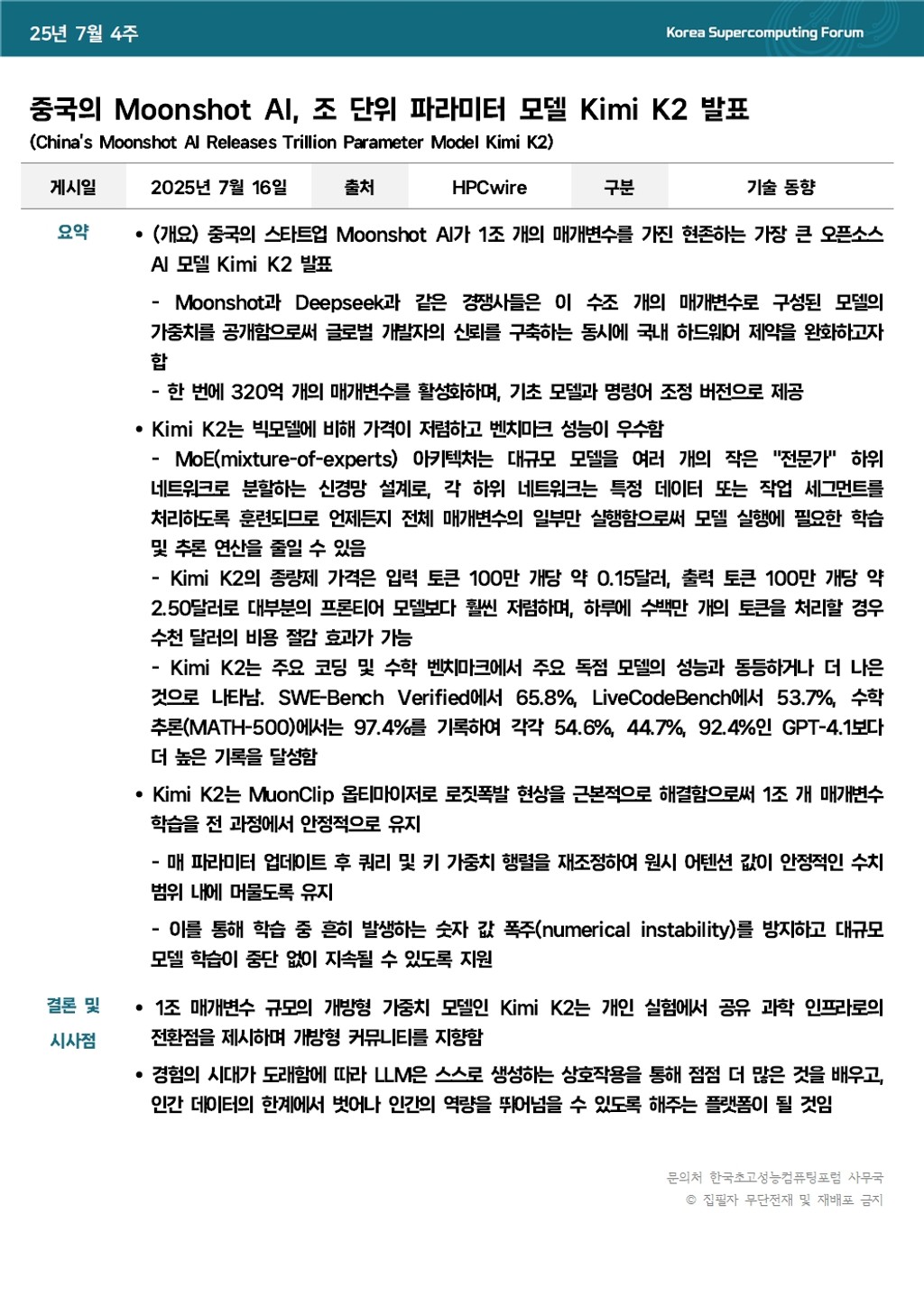 중국의 Moonshot AI, 조 단위 파라미터 모델 Kimi K2 발표