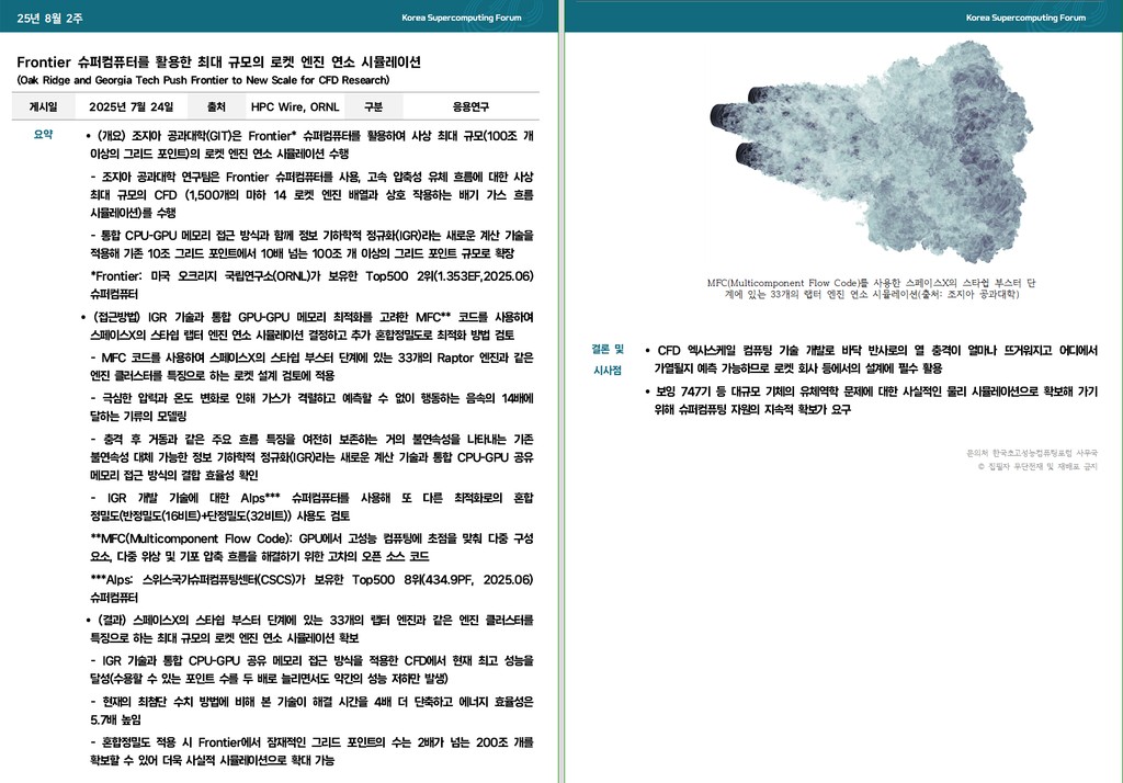 Frontier 슈퍼컴퓨터를 활용한 최대 규모의 로켓 엔진 연소 시뮬레이션