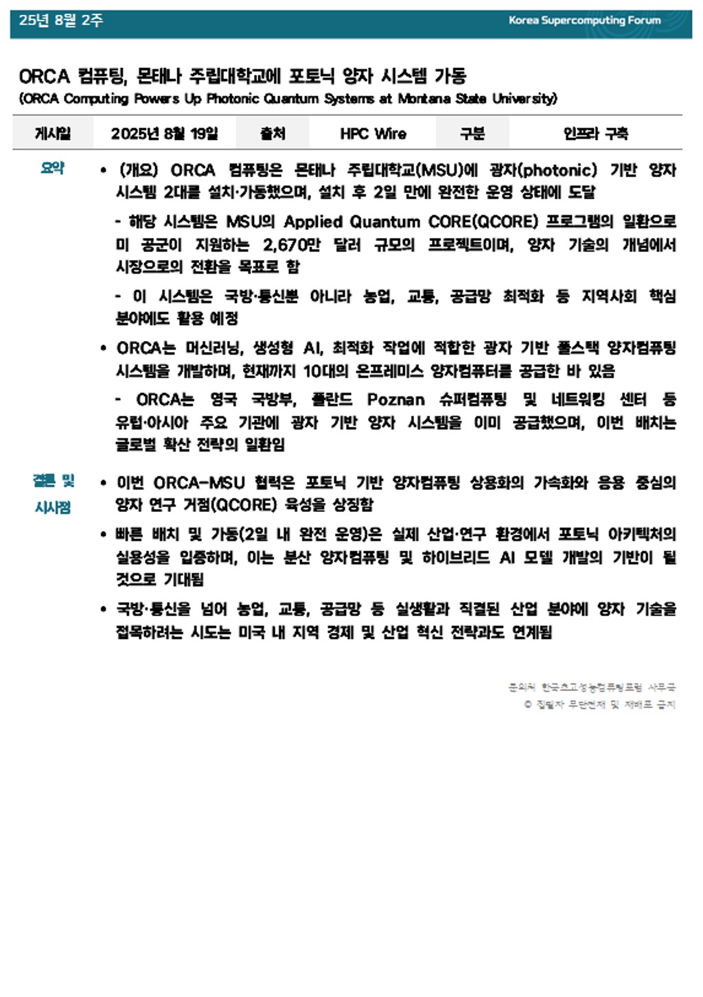 ORCA 컴퓨팅, 몬태나 주립대학교에 포토닉 양자 시스템 가동