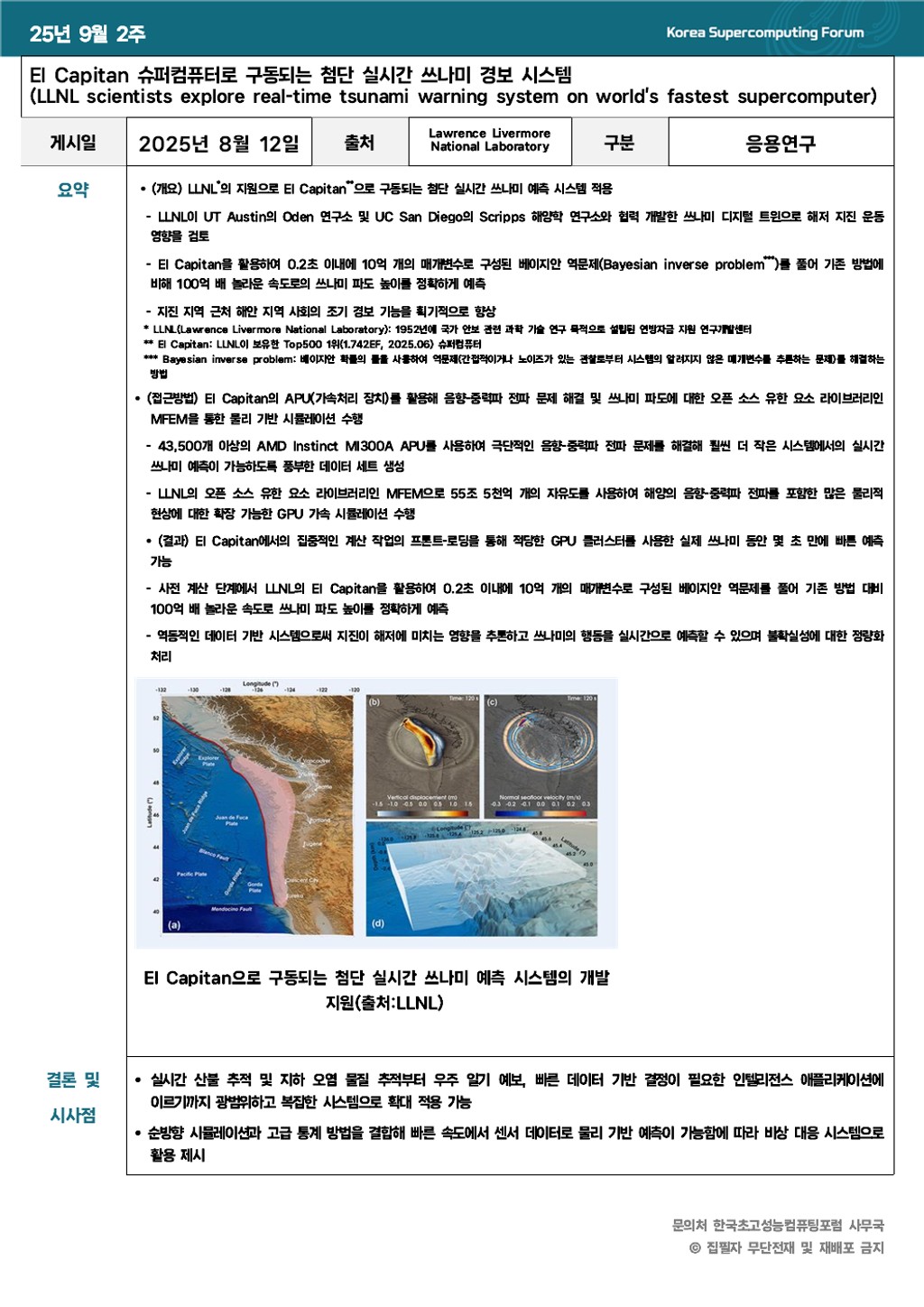 El Capitan 슈퍼컴퓨터로 구동되는 첨단 실시간 쓰나미 경보 시스템