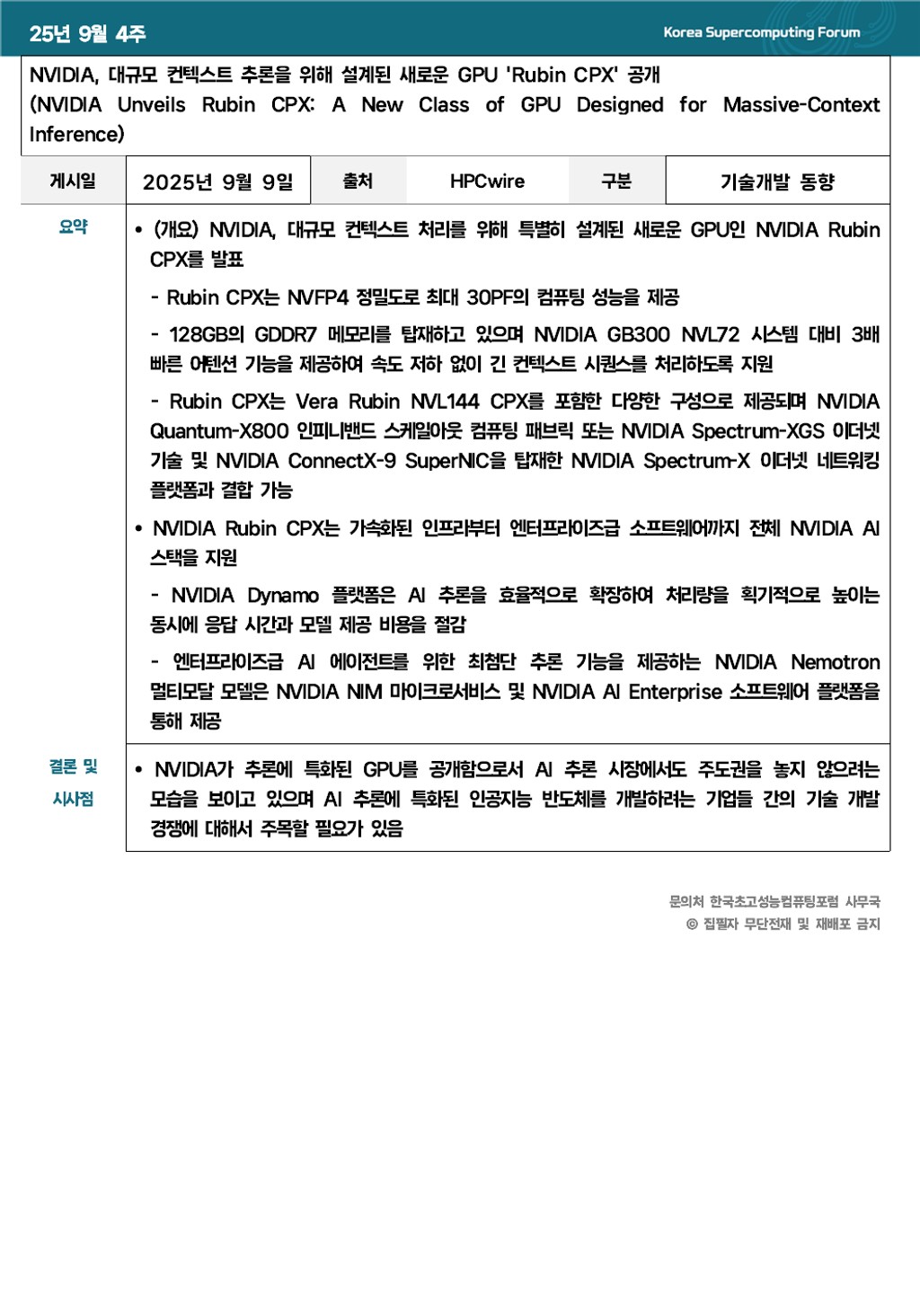 NVIDIA, 대규모 컨텍스트 추론을 위해 설계된 새로운 GPU ‘Rubin CPX’공개