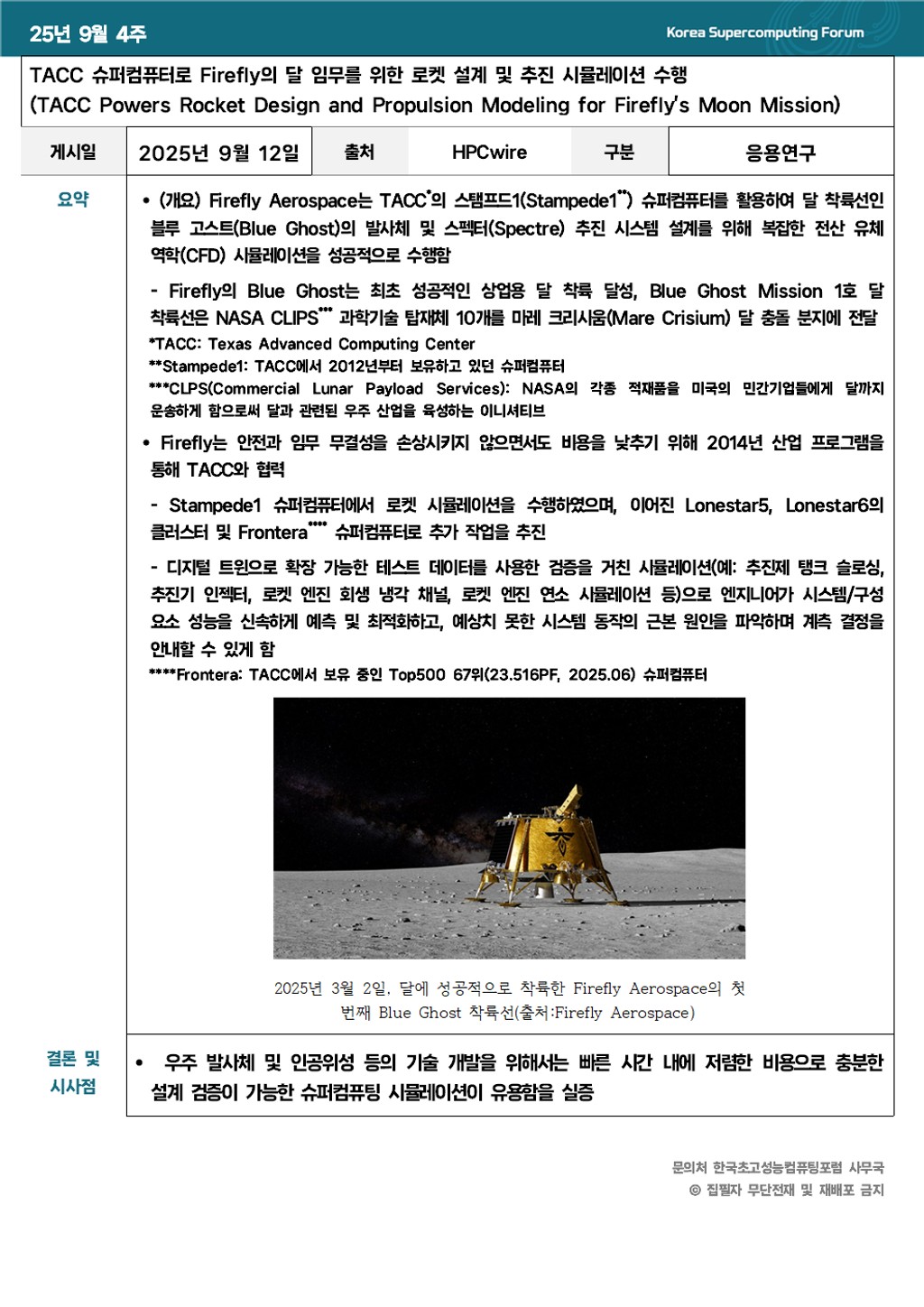 TACC 슈퍼컴퓨터로 Firefly의 달 임무를 위한 로켓 설계 추진 시뮬레이션 수행