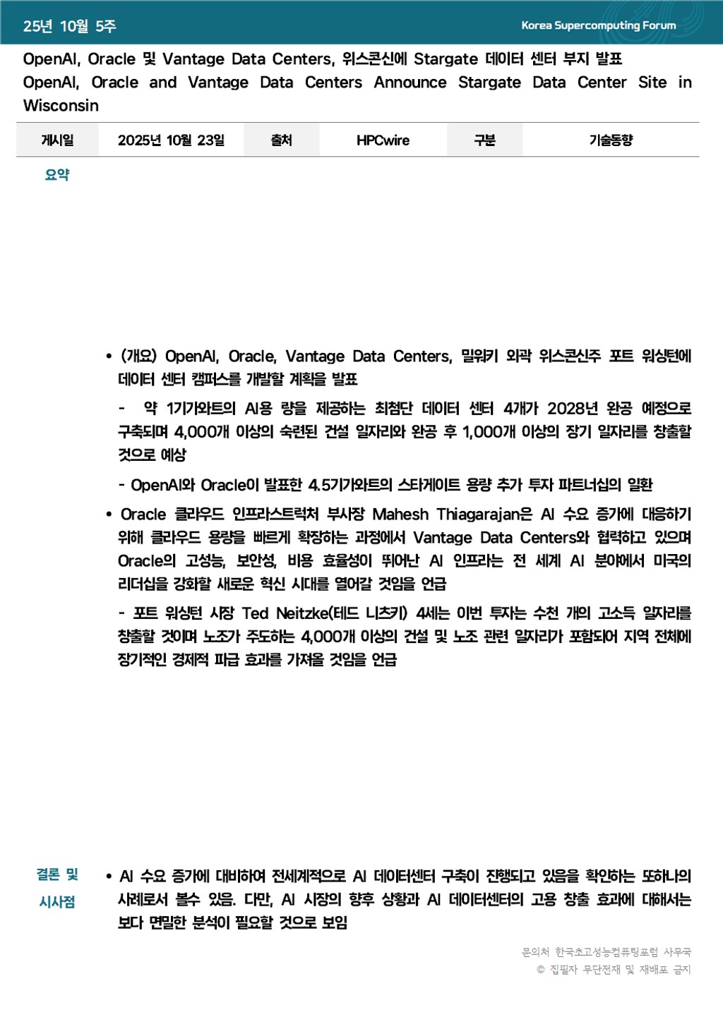 OpenAI, Oracle 및 Vantage Data Centers, 위스콘신에 Stargate 데이터 센터 부지 발표 OpenAI, Oracle and Vantage Data Centers Announce Stargate Data Center Site in Wisconsin