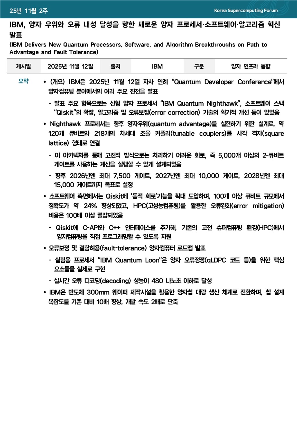 IBM, 양자 우위와 오류 내성 달성을 향한 새로운 양자 프로세서․소프트웨어․알고리즘 혁신 발표